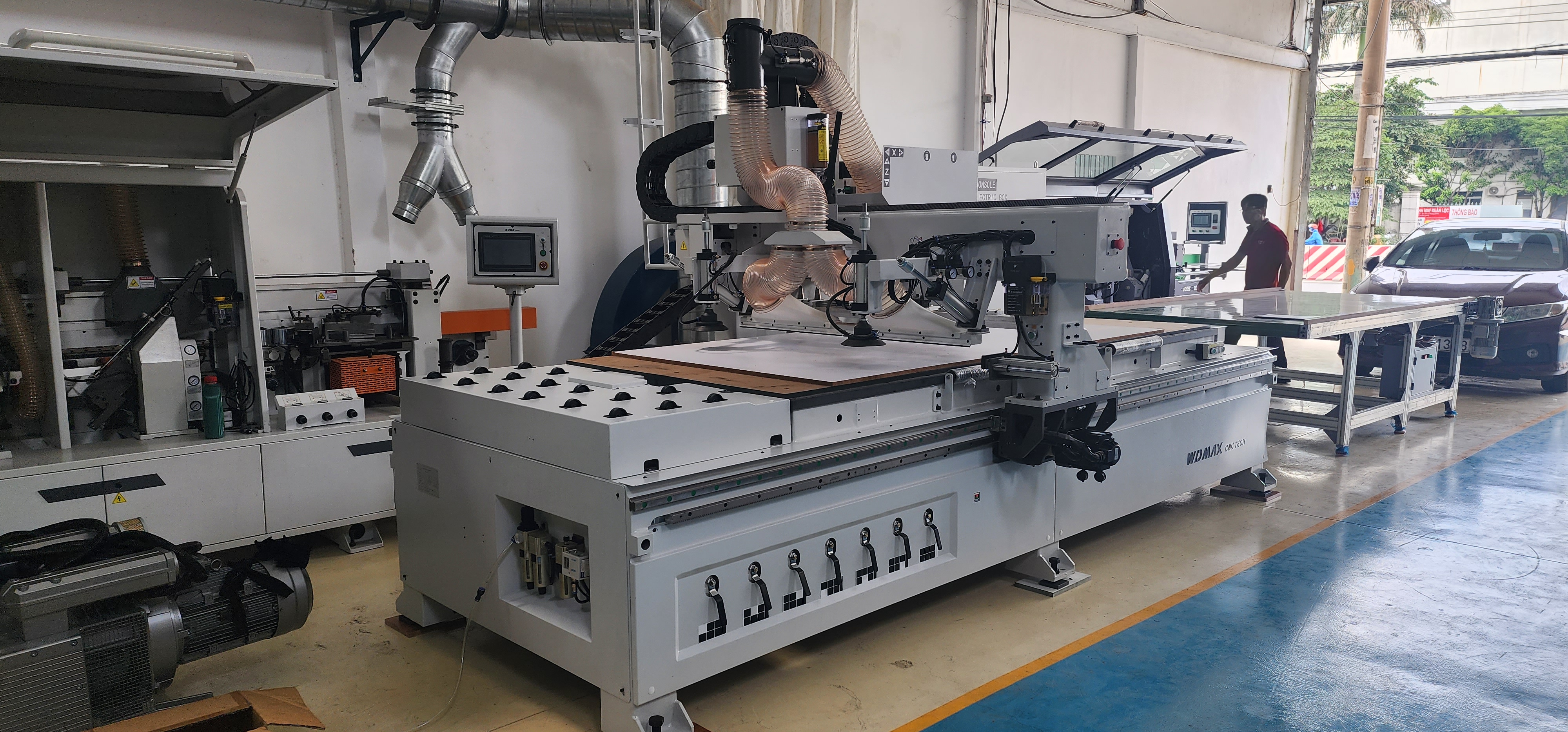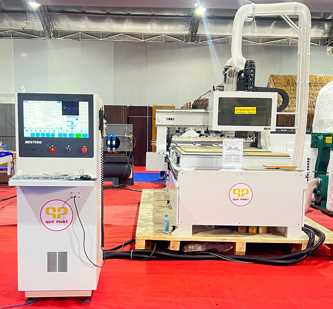 - Máy CNC gia công trung tâm chất lượng cao được sử dụng rộng rãi trong chế biến và sản xuất đồ nội thất bằng vật liệu nguyên chất và các tấm cửa khác nhau. Máy dùng để cắt tấm ván lớn thành các chi tiết nhỏ, có thể cắt theo đường thẳng, cong, tròn...chính xác, không mẻ bề mặt.