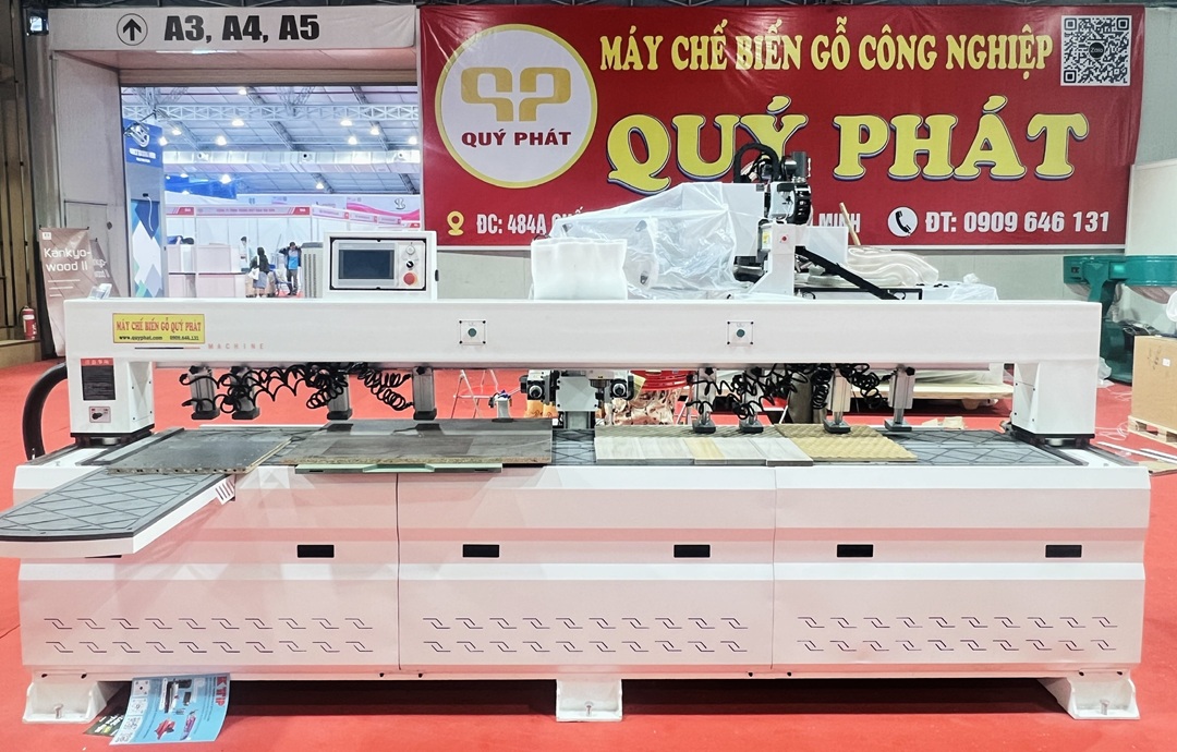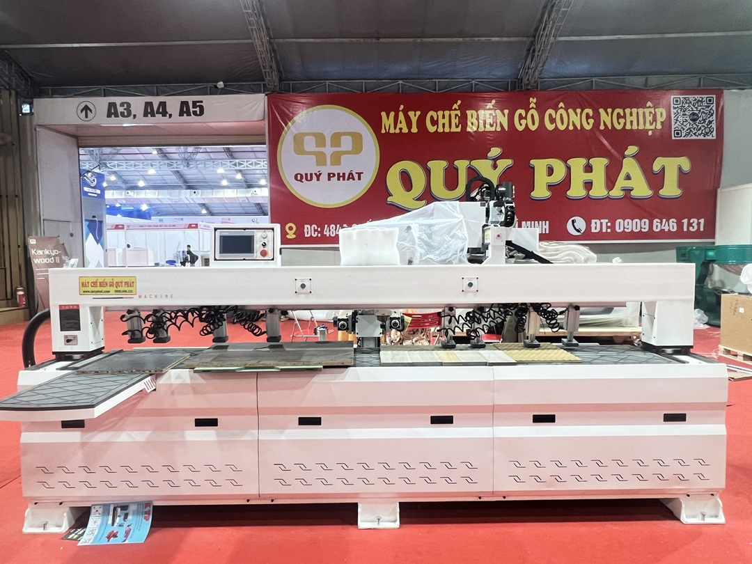 - Máy khoan phay đa năng, gia công mặt và cạnh ván hiệu quả với 4 thiết bị trục dao khác nhau: gồm 2 trục đứng và 2 trục ngang cho phép máy thực hiện được các chức năng như khoan cam liên kết, phay rãnh tay nắm cửa, khoan lỗ 2 chiều, phay rãnh 2 chiều, đục ổ khóa…